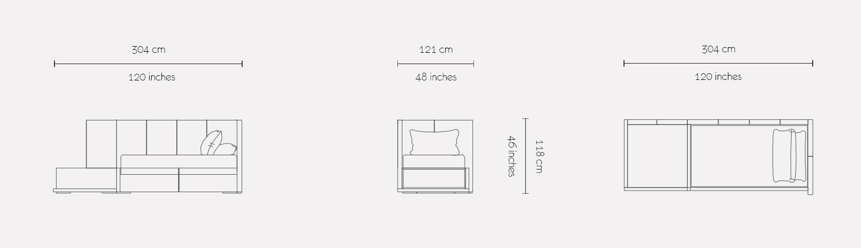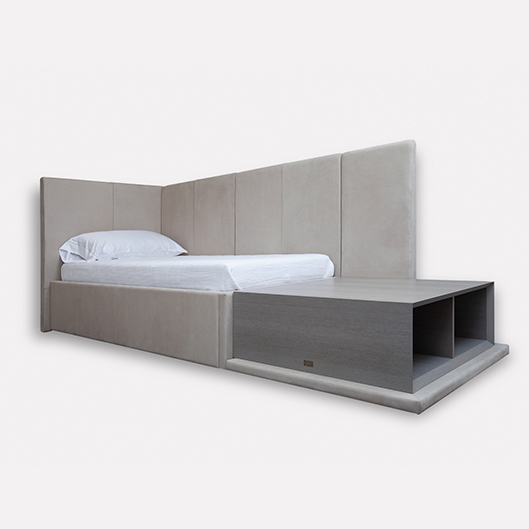 Inspired by the precious textile walls in royal bed-chambers, the ARRAZO bed features diligently stitched upholstery panels with revealing seams to create an elegant and warming head- and sideboard which can be tailored to the architecture of the bedroom. The strong upholstered frame and wood base grounds the bed.