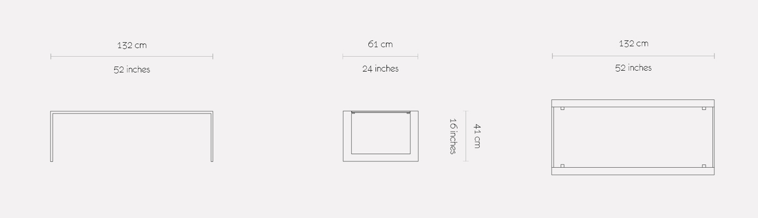 The thin metal tracks that are seamlessly connected define the very clean shape of this contemporary coffee table. The glass can be clear or in any of our shades to blend into the interiors.
