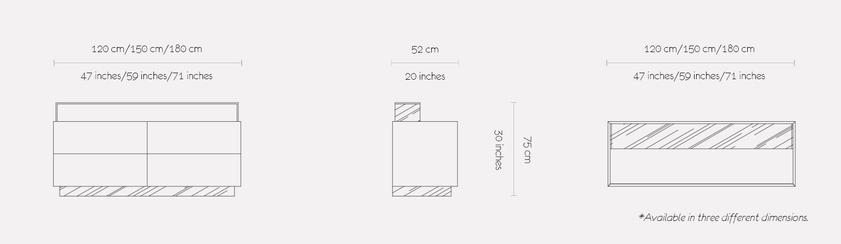 Inspired by a royal chest this clean line of cabinetry bears a secret. The hidden drawers adds to its simplistic yet elegant design a functional component. To personalize it to taste and functionality, the finishes of sides and top can be selected in any material from mirror, leather, wood and lacquer finishes which makes the COFRE a very versatile contemporary dresser.