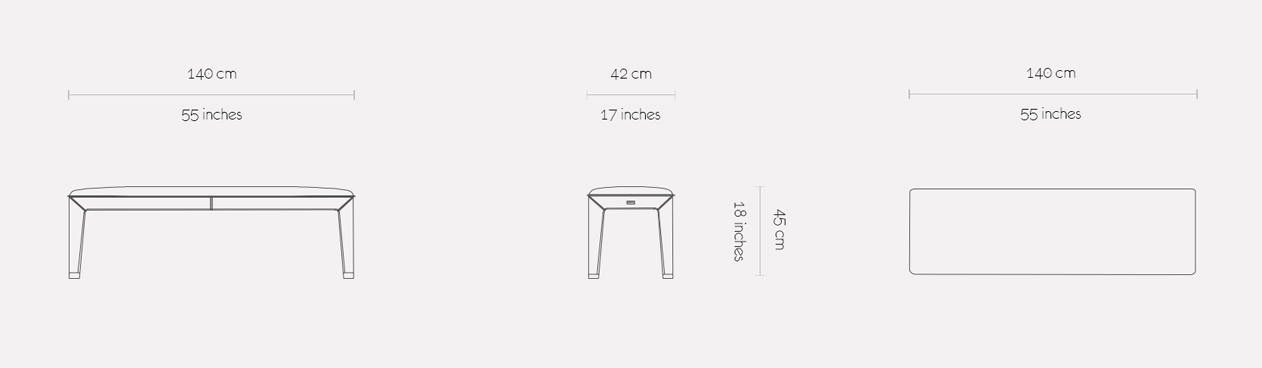 The bench of the CUBÉ collection exudes luxury craftsmanship. It captivates the attention with its modern lines combined with noble metal accents and impeccable stitching. The double cushioning on the seat adds to the comfort level while its straight shape and unobstructed silhouette make it a timeless and highly versatile bench.