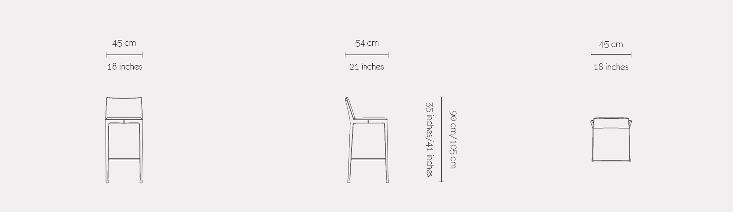 This bar or counter chair of the CUBÉ collection exudes luxury craftsmanship. It captivates the attention with its modern lines combined with noble metal accents at its top and feet and the posh upholstery with impeccable stitching. The double cushioning on the seat adds to the comfort level while its straight shape and unobstructed silhouette make it a timeless piece that elevates your bar or counter.