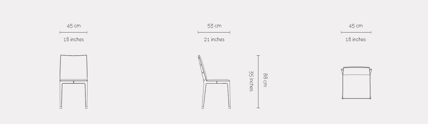 This elegant dining chair of the CUBÉ collection exudes luxury craftsmanship. It captivates the attention with its modern lines combined with noble metal accents at its top and feet and the posh upholstery with impeccable stitching. The double cushioning on the seat adds to the comfort level while its straight shape and unobstructed silhouette make it a timeless piece that elevates any dining table.