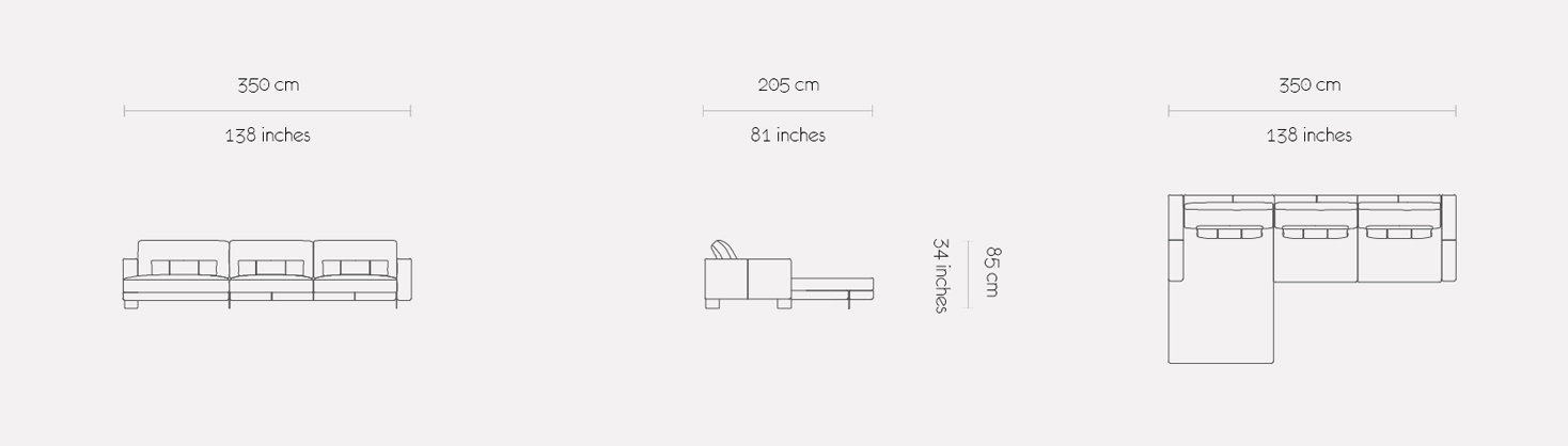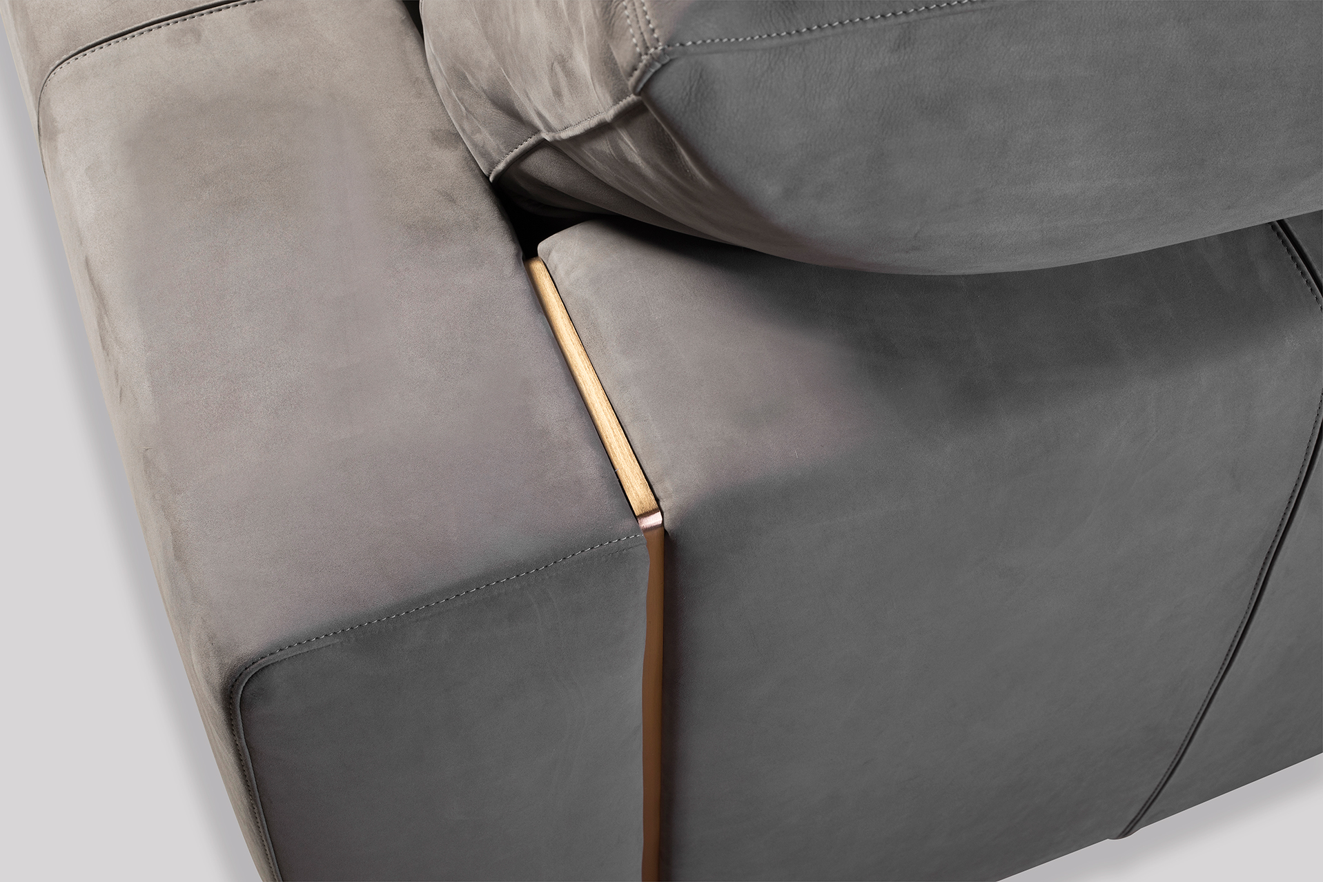 Feel like a movie star on this luxurious sofa upholstered with memory foam and down-filled cushions for extra comfort. Its bold, self-assured personality rests on sleekly designed metal feet that go through the clean shape of the frame juxtaposing the noble metal and soft upholstery in the piece. A revealing pleat adds another element of sophistication giving testimony to the finest Italian craftsmanship that built this sofa.