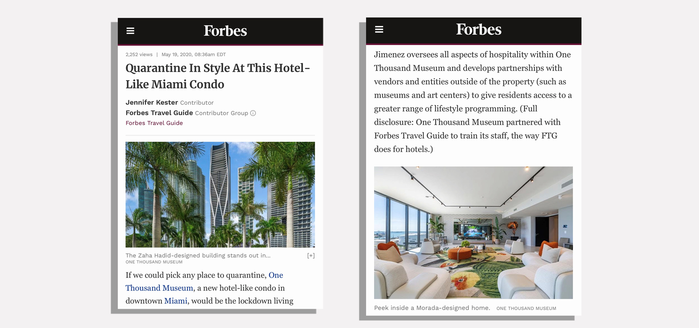 We are beyond honored to announce that MORADA-Haute Furniture Boutique’s collaboration One Thousand Museum Residences by Zaha Hadid Architects was reviewed by Keith Flamer for FORBES.com.