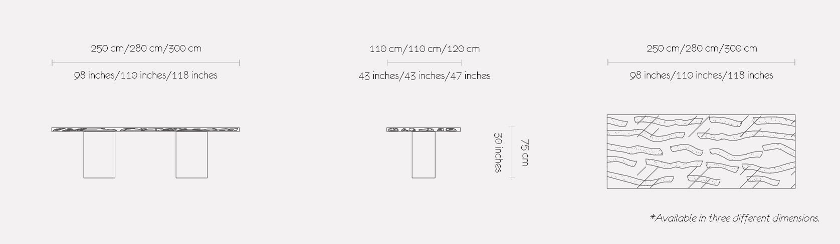 Nature and Innovation come together in this dining table as the naturally twisted Liana woods are floating in an extra clear lake of Resin and resting on a glass base. The straight shape of top and base provide the contemporary “invisible” background to have nature be the unique design element.