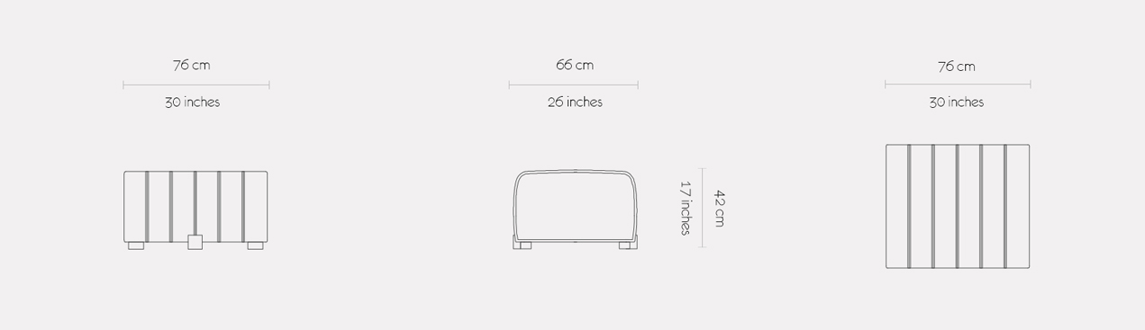 A contemporary take on the physics of comfort, the GONNA ottoman plays with the combination of leather and fabric, skillfully stitched, and enriched by noble metal feet.