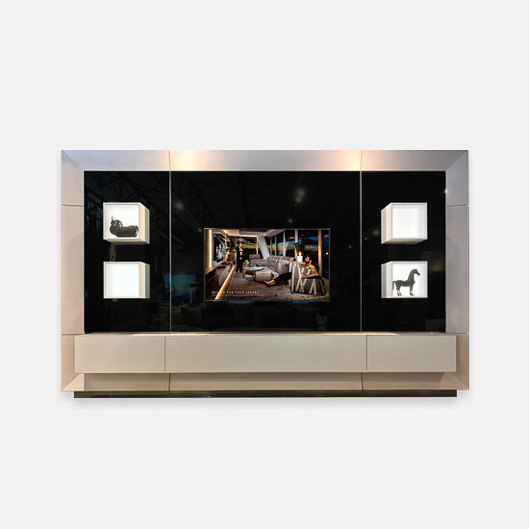 This wall unit concept is inspired by the framed canvas of the ancient European masters. The uniqueness and lightness will make it a focal point of your living space without overwhelming the room. The unit can be customized to your taste and necessities regarding dimensions and configuration and carries our “Touch me” LED light technology. Get creative in “painting” your personal masterpiece for your MARCO wall unit.