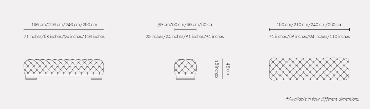 The NUBE ottoman is inspired by a cloud and gives a contemporary twist to the classic Capitonné. Our artisans’ mastery of this special technique shows in the skillfully tufted seating grounding on a European oak frame with noble metal feet. A unique combination of materials and forms blend into this re-invented masterpiece of craftsmanship as a comfortable yet representative ottoman.