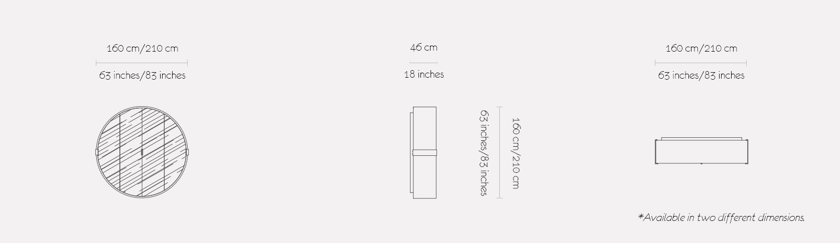 Circles have no beginning or end. They represent the eternal whole and in every culture are an archetypical symbol for the sun, the earth and the moon. This cabinet wrapped in leather has an LED halo all around and allows to storage glasses, plates and decorative items to be used as a buffet or a bar.