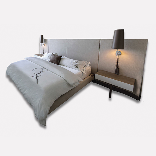 Inspired by the Shanghainese interpretation of Art Deco, this bed represents the very essence of embracing East-meets-West aesthetics in contemporary style and comfort. The simplification of geometric lines is paired with a modern twist of tassels and revealing pleats on the corners as design elements to coalesce into a timeless luxury bed. The IMPERIAL edition features an extra-wide headboard with integrated nightstands to achieve a hotel-like look & feel in your master suite.