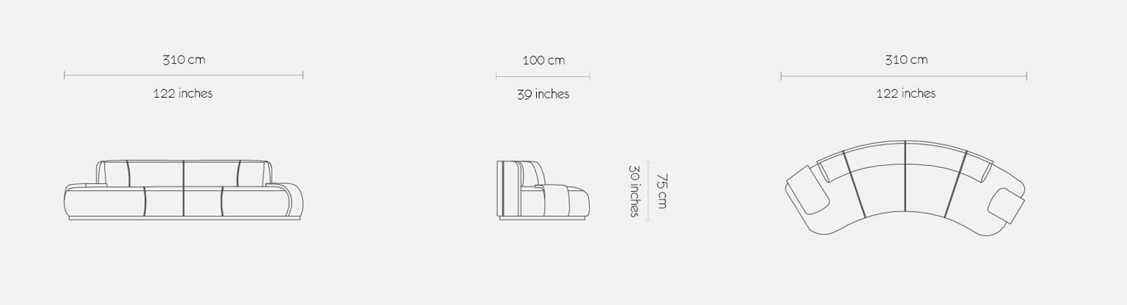 With its smooth curves and clean design, the SILHOUETTE brings subtle elegance into space. Generous seating and the multifunctional armrest that also can be used as a side table make this sofa inviting to both chill and entertain. The half-round shape encourages conversation and allows for smooth circulation whilst the soft, lavish upholstery exudes comfort and modern luxury.