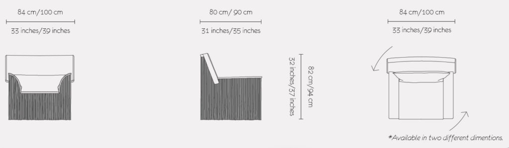 The TAGLIA armchair introduces the timeless fashion element of fringes to haute furniture design. The swung armrest and the oversized backrest are surrounded by a dense skirt of nubuck leather fringes that come to life through a swivel base which elevates the joie de vivre of this armchair.